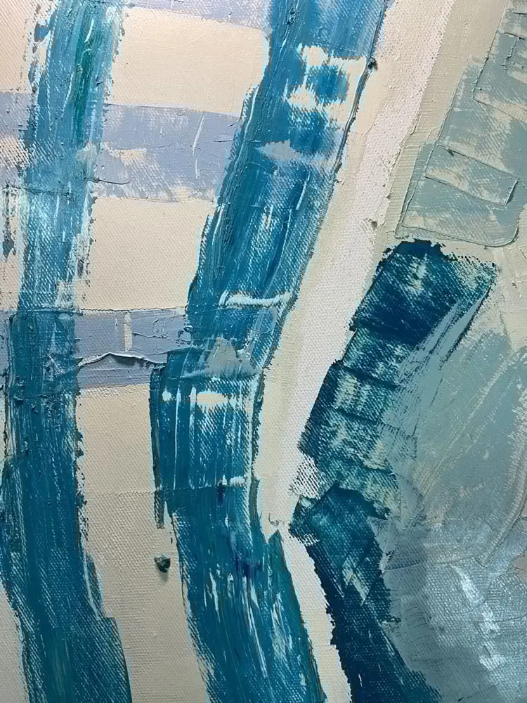 “In this artwork, Svetlana employs dynamic brushstrokes and layered textures to create a sense of movement and depth. The composition may feature sweeping curves and bold geometric shapes that dance across the canvas, capturing the rhythm of nature. Splashes of contrasting colors evoke the changing seasons, from the lush greens of spring to the warm tones of a sun-kissed summer, or the earthy browns of autumn.